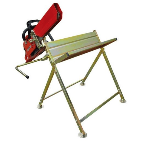 Assembly required. Length of holder = 355mm. Leg length = 725mm. Clamps for holding chainsaw.