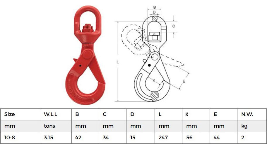 Swivel Safety Hook Complete with Latch 10mm